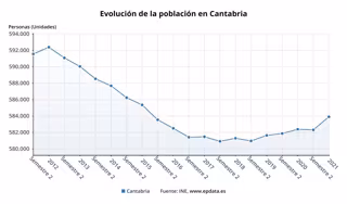 La población de Cantabria a 1 de enero de 2020 ascendió a 583.904 personas frente a las 582.388 del año anterior, aunque el saldo vegetativo fue negativo (-3.073).