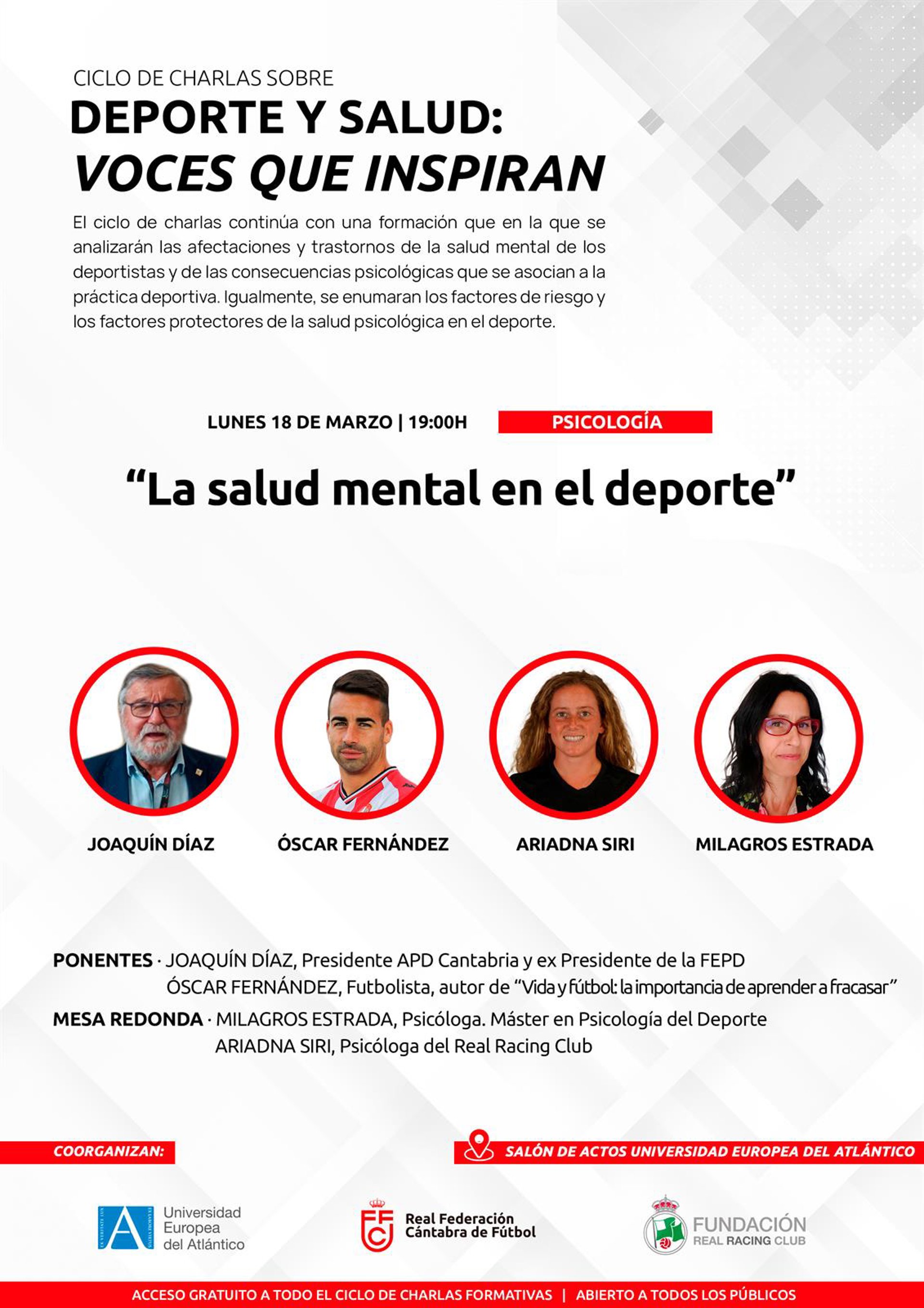 Por último, se incorporarán a la cita las psicólogas Milagros Estrada, Máster en Psicología del Deporte, y Ariadna Siri, psicóloga del Real Racing Club quienes, junto a Díaz y Fernández, conformarán una mesa redonda.