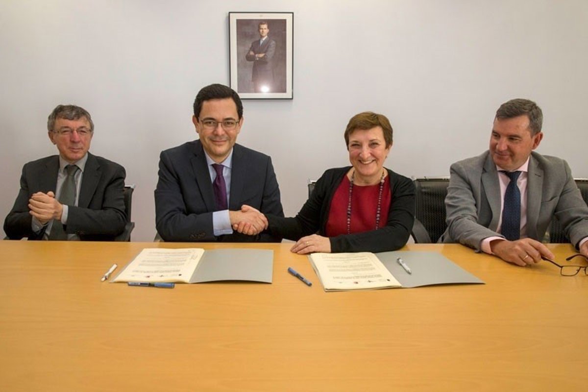 La consejera de Sanidad, Luisa Real, y el director general de la Fundación Amancio Ortega, Óscar Ortega, han firmado hoy el convenio específico entre el Servicio Cántabro de Salud y la Fundación Amancio Ortega Gaona para la donación de los importes correspondientes a los costes de adquisición de diverso equipamiento oncológico, que han ascendido a 2,8 millones.