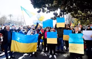 Archivo - Ucranianos residentes en Cantabria en una concentración en Santander contra la guerra e invasión de Rusia en foto de archivo - JUAN MANUEL SERRANO ARCE - Archivo