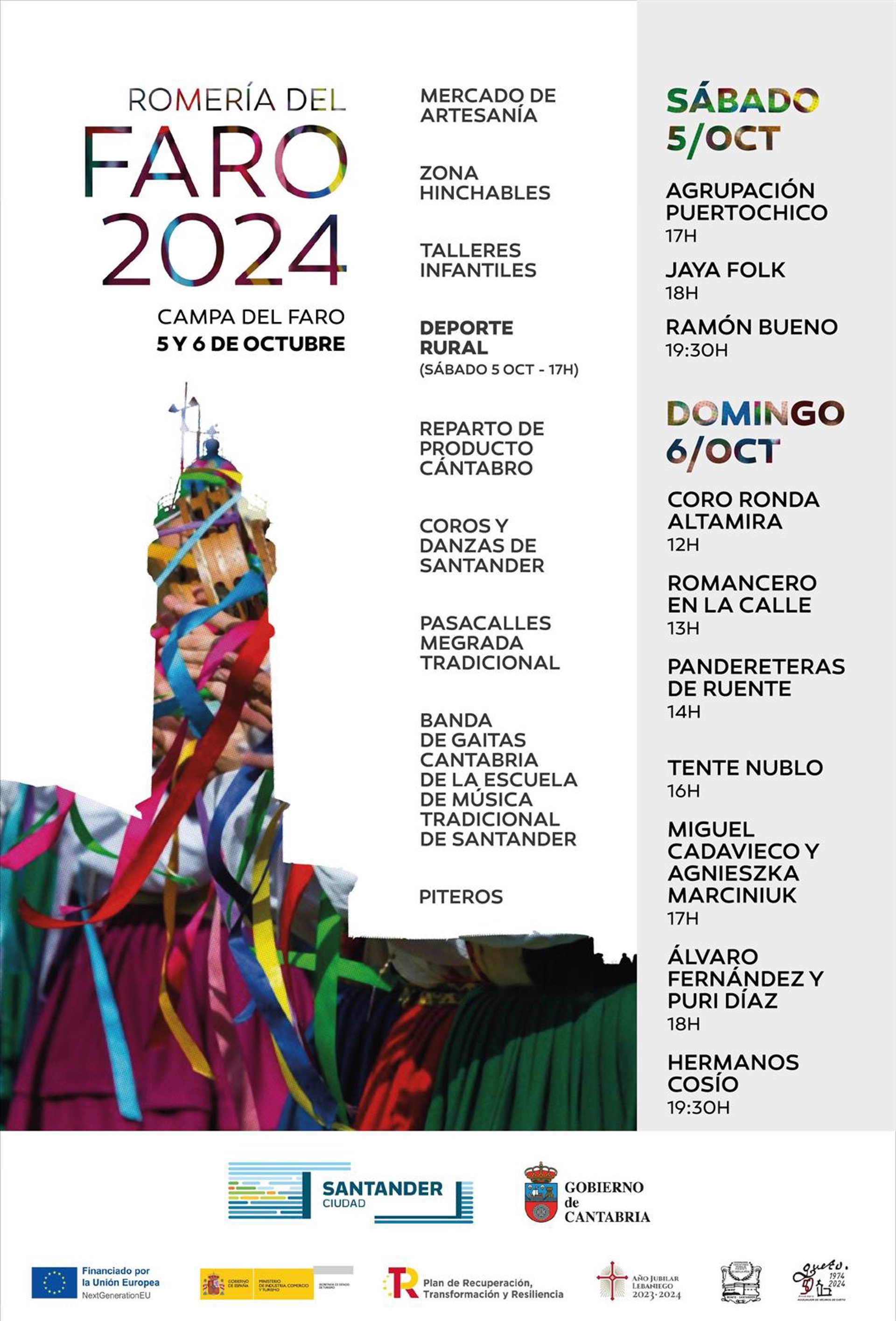 De esta manera, la romería comenzará el sábado 5 de octubre con las actuaciones de la Agrupación Puertochico (17 horas), Jaya Folk (18 horas) y Ramón Bueno (19.30 horas). También a las 17 horas está programada una exhibición de deporte rural y se habilitará una zona infantil con hinchables.
