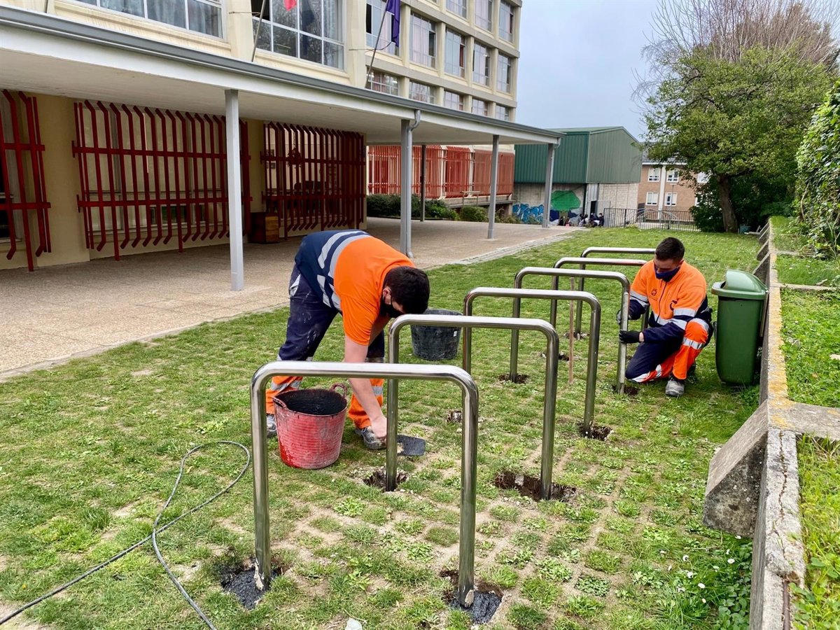 Instalación de aparcabicis junto a un colegio de Santander - AYUNTAMIENTO