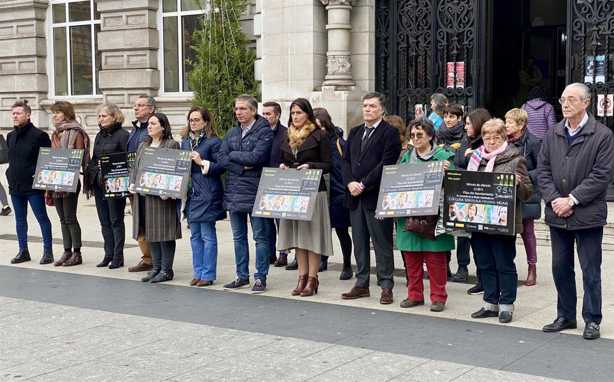 La plaza del Ayuntamiento de Santander ha acogido este mediodía un minuto de silencio en el que han participado miembros de la Corporación municipal, trabajadores y ciudadanos para condenar los últimos cinco asesinatos de violencia machista ocurridos en Barcelona, Córdoba, Menorca, Málaga y Madrid.