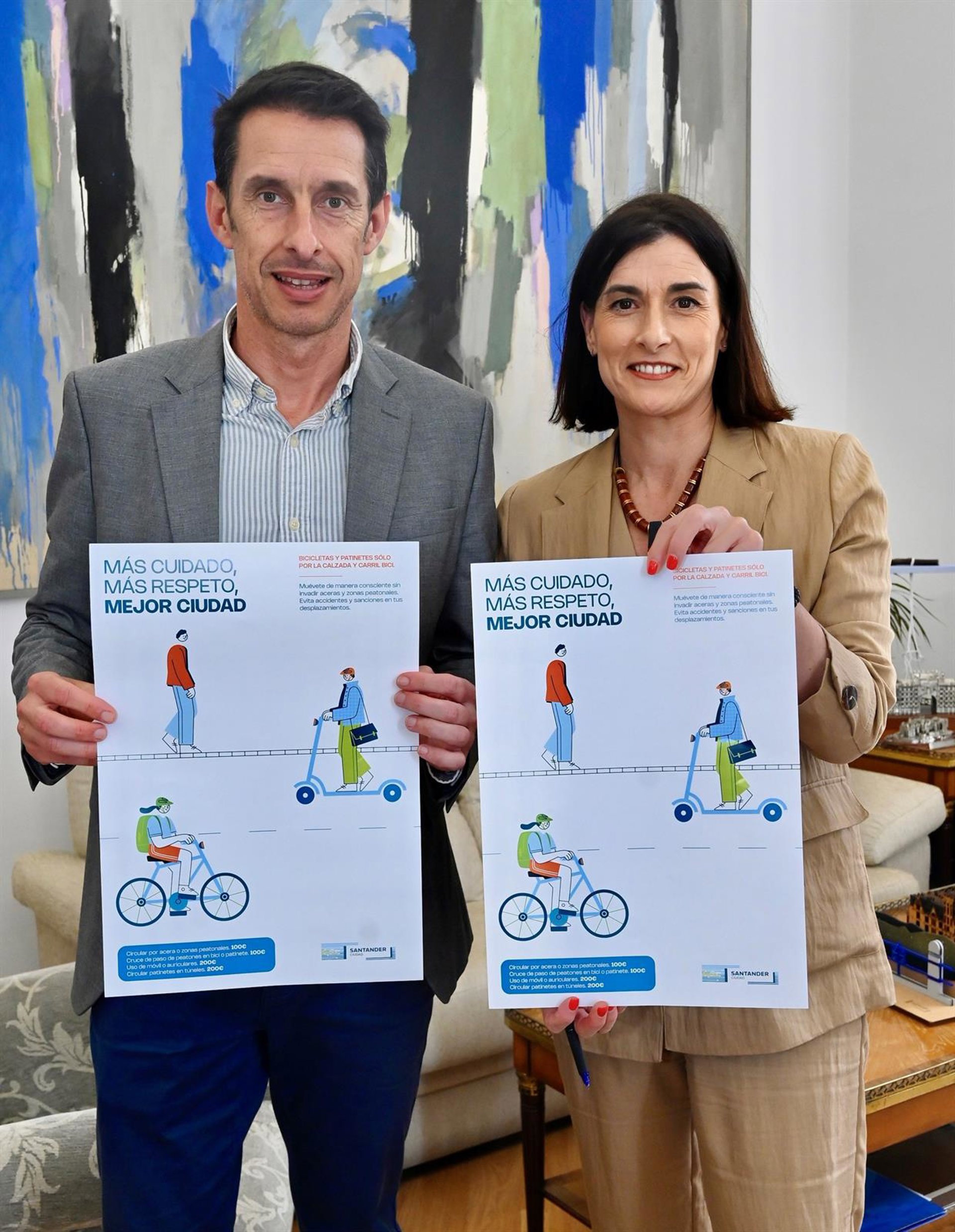 El Ayuntamiento de Santander ha puesto en marcha este martes una campaña informativa y de concienciación dirigida a los usuarios de vehículos de movilidad personal (VMP-bicicletas y patinetes) que, bajo el título 'Más cuidado, más respeto, mejor ciudad', pone el foco en la necesidad de moverse de manera consciente, sin invadir aceras o zonas peatonales para evitar accidentes y sanciones.