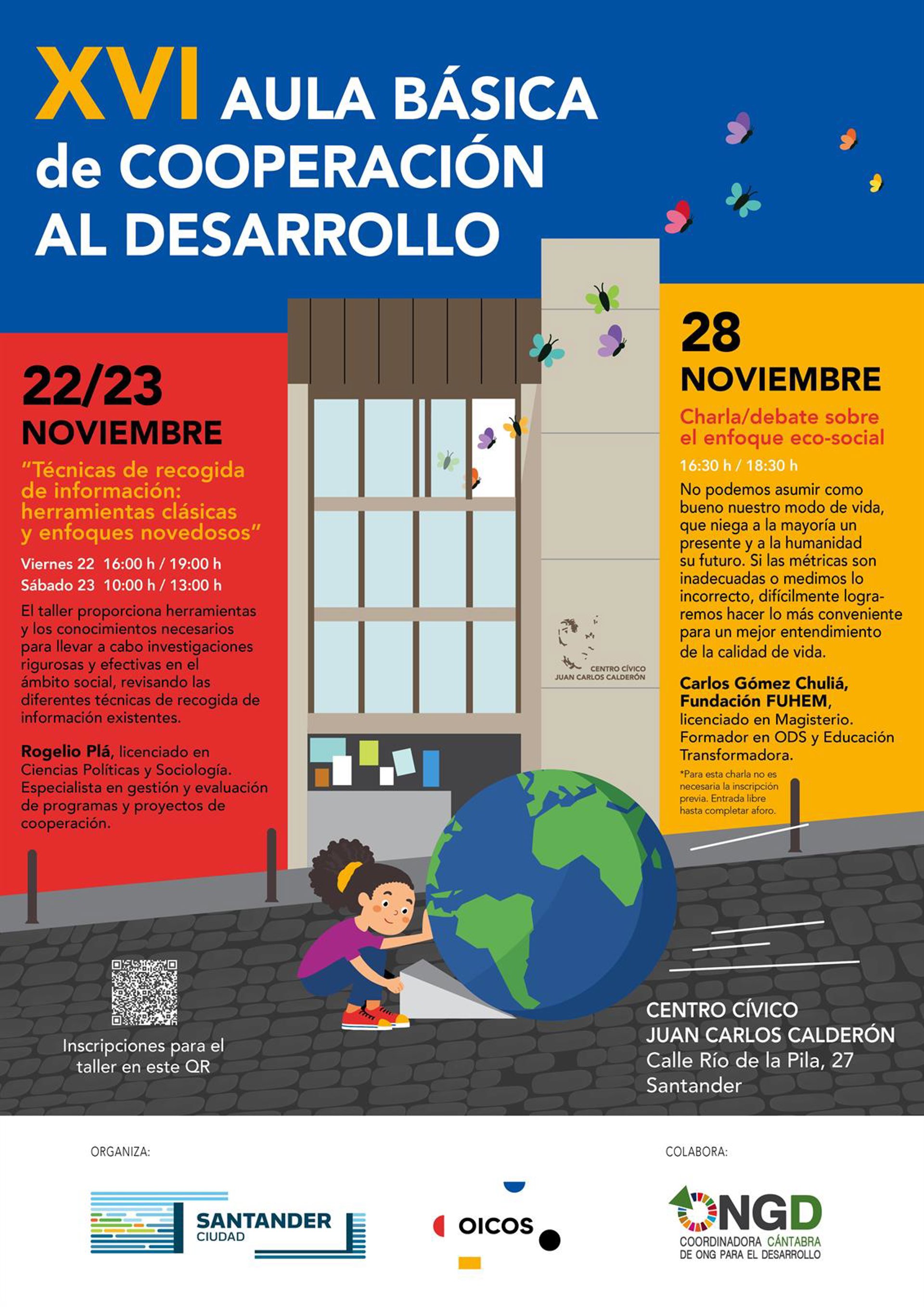 El Ayuntamiento de Santander, a través de la Oficina de Integración y Cooperación Social (OICOS), va a poner en marcha la XVI Aula Básica de Formación en Cooperación al Desarrollo, que tendrá lugar los días 22, 23 y 28 de noviembre en las instalaciones del centro cívico Juan Carlos Calderón (Río de la Pila).