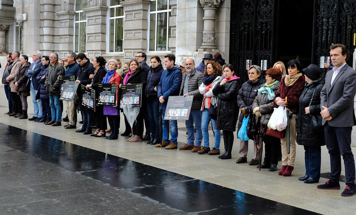 Miembros de la Corporación santanderina, trabajadores municipales y vecinos se han concentrado este mediodía en la plaza del Ayuntamiento para recordar a la mujer asesinada en Blanes (Girona) el pasado lunes 9 de abril.