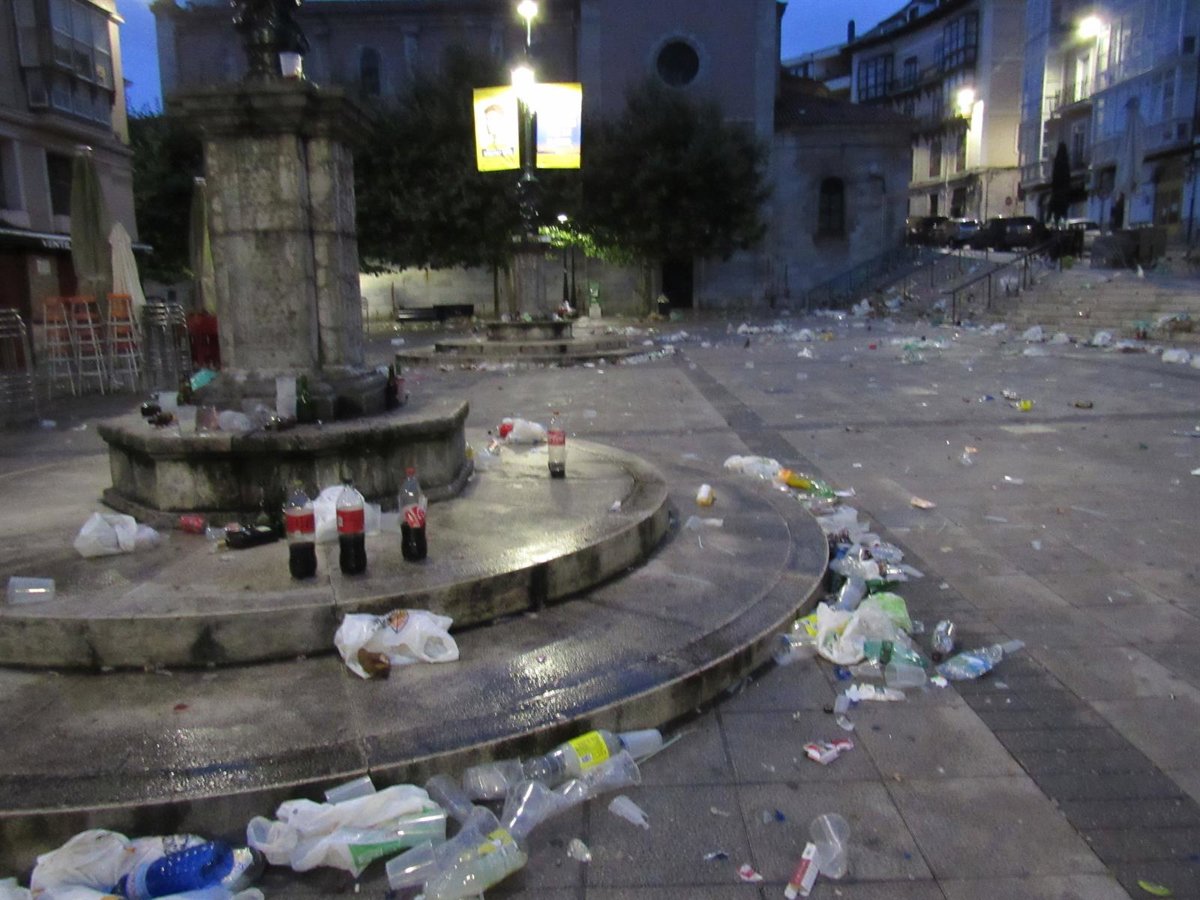 Archivo - Restos de botellón en la Plaza Cañadío de Santander - AAVV POMBO, CAÑADÍO Y ENSANCHE - Archivo