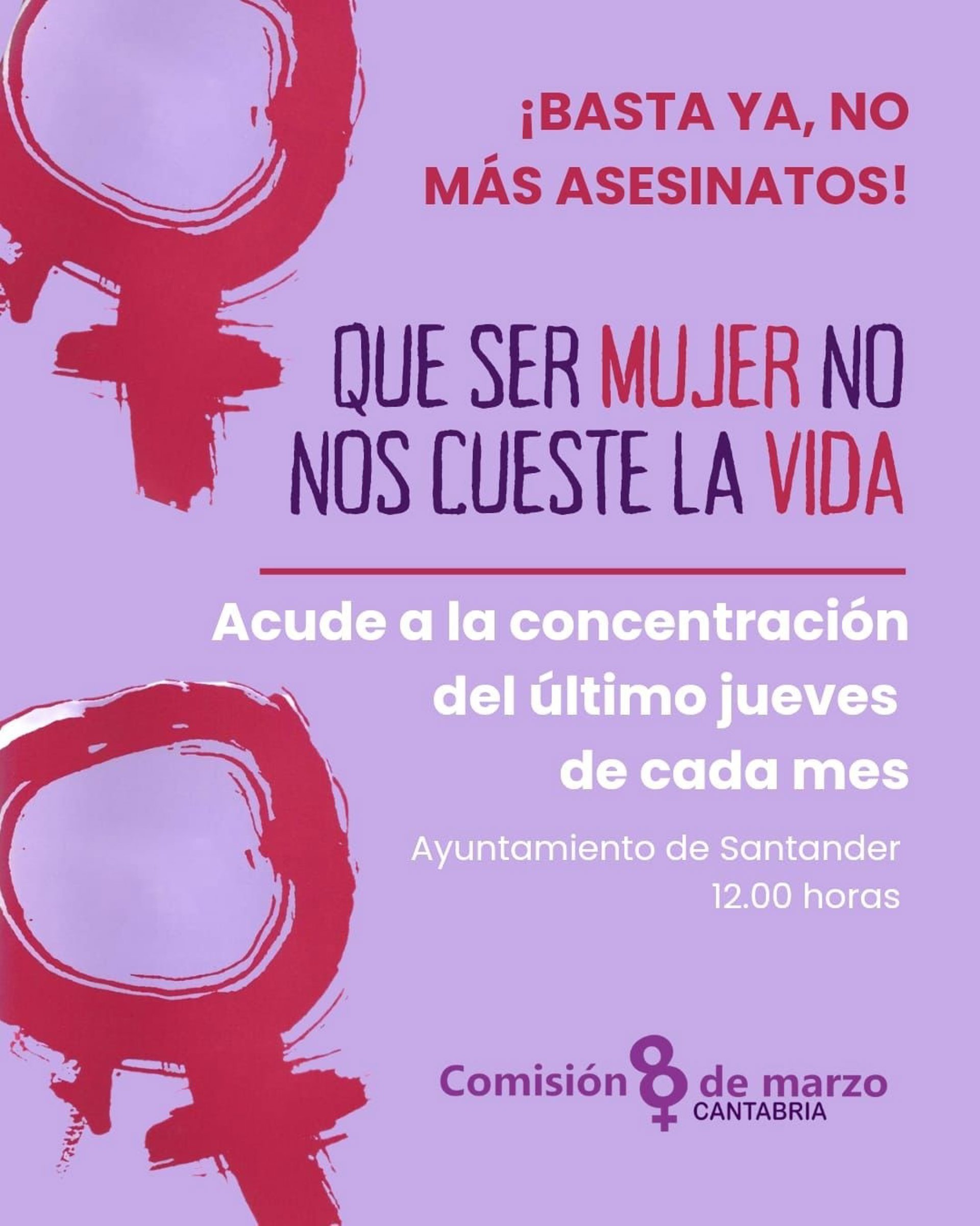 Cartel concentraciones contra asesinatos machistas en Santander - COMISIÓN 8 MARZO