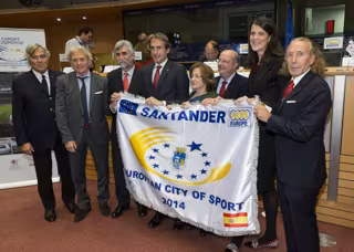 El alcalde, Iñigo de la Serna, ha recogido este miércoles en Bruselas la bandera que acredita a Santander como Ciudad Europea del Deporte 2014 y ha trasladado el compromiso de que la capital cántabra "se va a volcar" para mostrar el próximo año el espíritu deportivo que atesora.