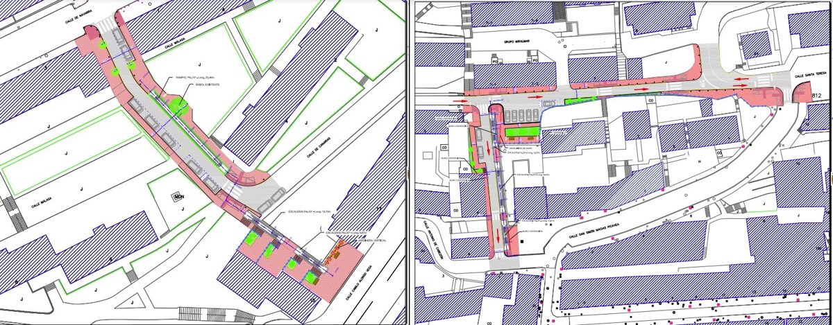 Además, el proyecto incluye la urbanización de ambos viales, la mejora de aceras, renovación de servicios de abastecimiento, saneamiento y electricidad, y colocación de nuevos hidrantes y mobiliario urbano.