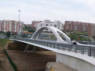 Además, este puente puede ser utilizados tanto por los ciudadanos que vayan en coche o caminando como por los que van en bici, ya que la infraestructura está dotada con un carril bici que discurre por el centro de la misma, por debajo de la arcada.