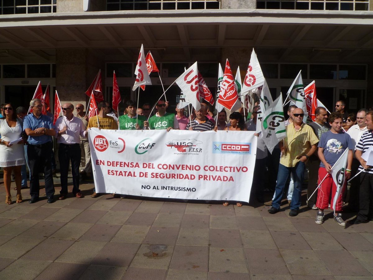 UGT, CSIF, CCOO y USO proseguirán con las movilizaciones después del verano para exigir el cumplimiento del convenio colectivo estatal de seguridad privada, tanto a las propias empresas de seguridad como a los clientes que las contratan, muchas de ellas por la Administración, según precisaron hoy representantes sindicales en una concentración de protesta convocada ante la estación de FEVE en Santander.