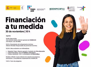La Sociedad para el Desarrollo Regional de Cantabria (SODERCAN) y la Empresa Nacional de Innovación (ENISA) organizan el próximo 30 de noviembre una jornada online sobre para dar a conocer las diferentes líneas de financiación que esta empresa dependiente del Ministerio de Industria pone a disposición de las pymes y emprendedores de Cantabria que quieren impulsar sus proyectos de emprendimiento innovador.