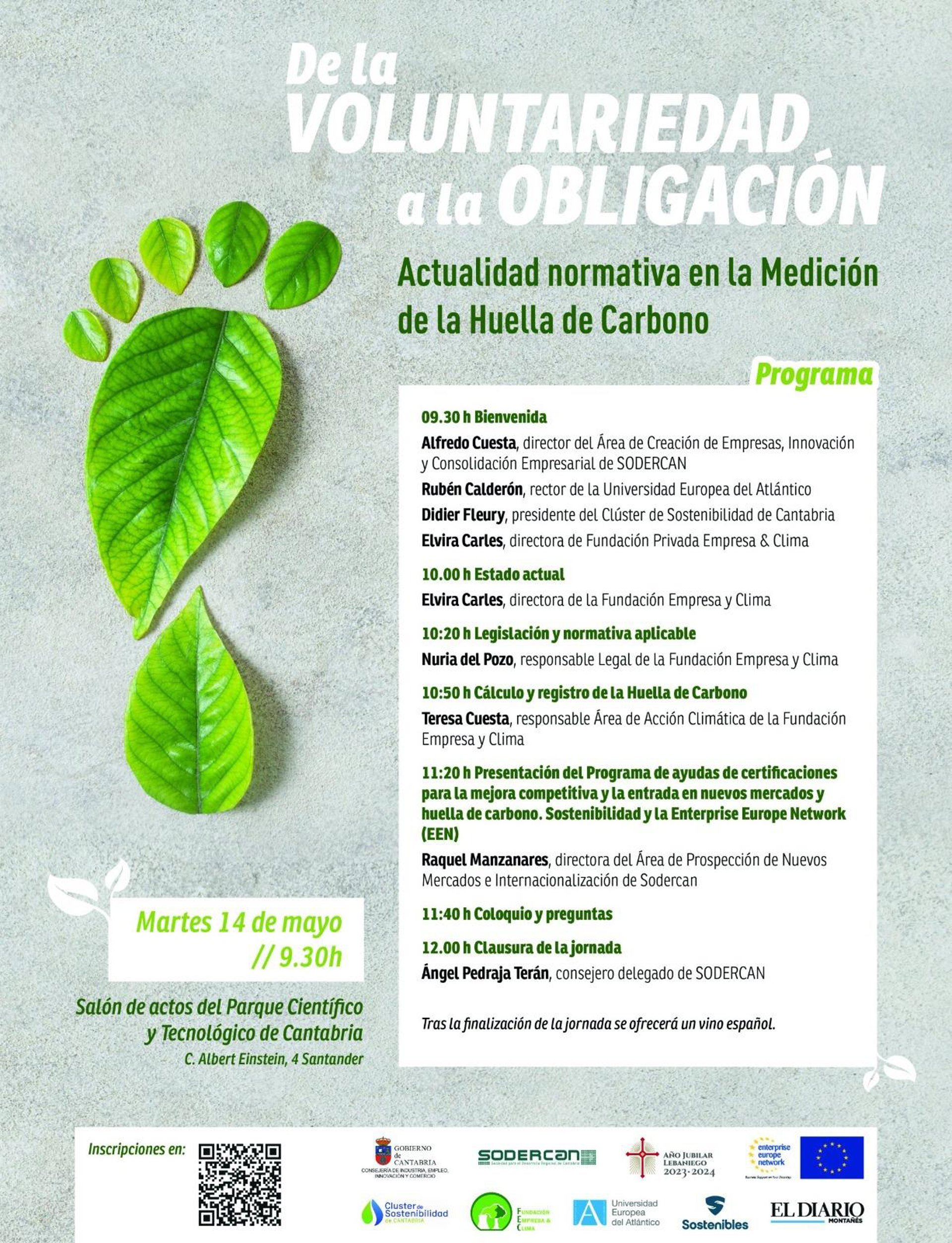 La propuesta informativa, bajo el epígrafe 'De la voluntariedad a la obligación. Actualidad normativa en la medición de la huella de carbono', se lleva a cabo en colaboración con el Diario Montañés, la Fundación Empresa y Clima, la Universidad Europea del Atlántico y el Clúster de sostenibilidad.