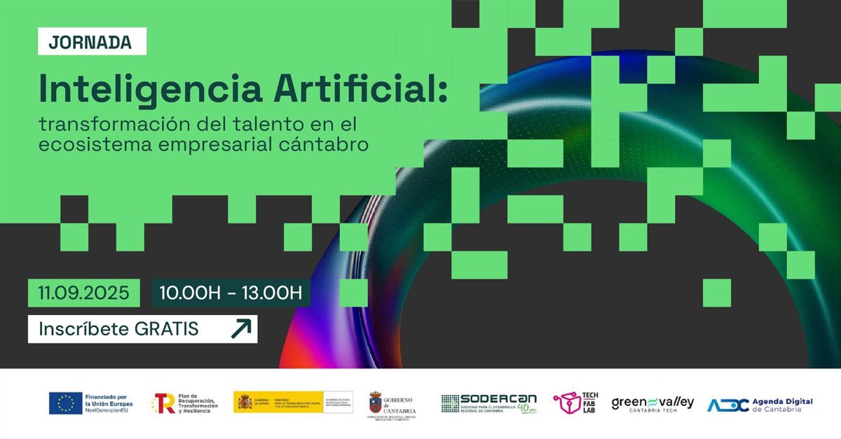 La Sociedad para el Desarrollo de Cantabria (SODERCAN), adscrita a la Consejería de Innovación, ofrecerá el 11 de septiembre la jornada 'Inteligencia Artificial: Transformación del talento en el ecosistema empresarial cántabro', dirigida a empresas y emprendedores.