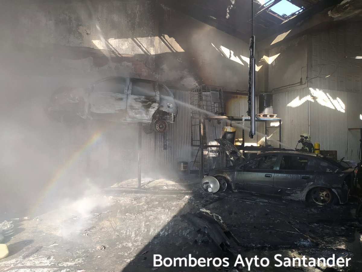 El fuego afectó a varios turismos, así como a la cubierta de la edificación y a unos almancedes anexos, han informado los efectivos santanderinos en su red social 'X'.