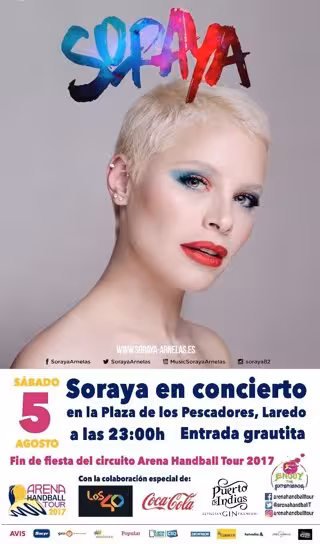 La cantante Soraya actuará este sábado, 5 de agosto, en Laredo, actuación con la que se clausurará el XIX Campeonato de España de Balonmano Playa.