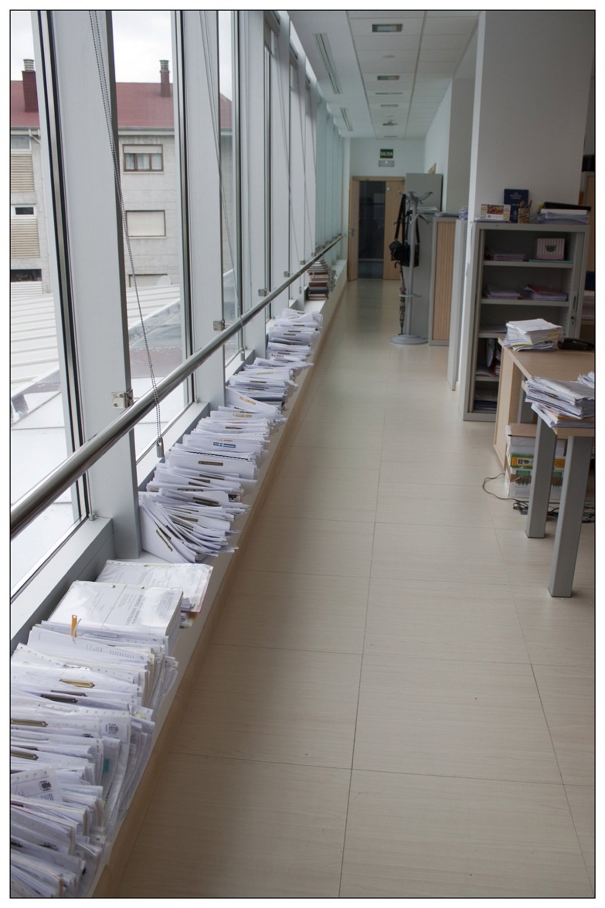 Por su parte, el mobiliario es "inadecuado", "no cumple la normativa" y es "escaso", denuncia STAJ, para señalar que "ha habido que aprovechar, en los pasillos, las repisas de los ventanales para almacenar los montones de expedientes, aumentando así esa sensación de desorden que destilan los lugares de trabajo de nuestros compañeros en Torrrelavega, los cuales consideran que este edificio reúne peores condiciones que el antiguo".