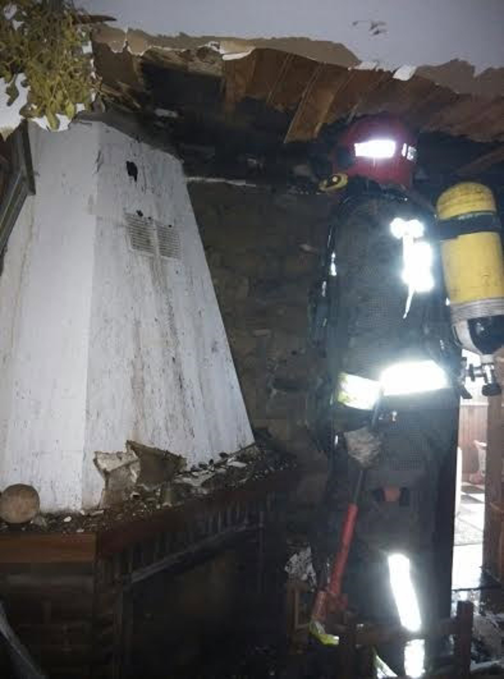 En la vivienda de Molledo, una casa unifamiliar de dos alturas ubicada en el barrio de García Lomas del municipio, el fuego iniciado en la chimenea quemó la estructura colindante al tubo de salida de humos.
