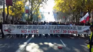 La protesta en Madrid está convocada por las principales asociaciones del sector (Fedetaxi, Antaxi, Élite y las plataformas TNT y Caracol) y se ha desarrllado desde Atocha hasta Neptuno, en el marco del paro de 24 horas convocado en todo el país.