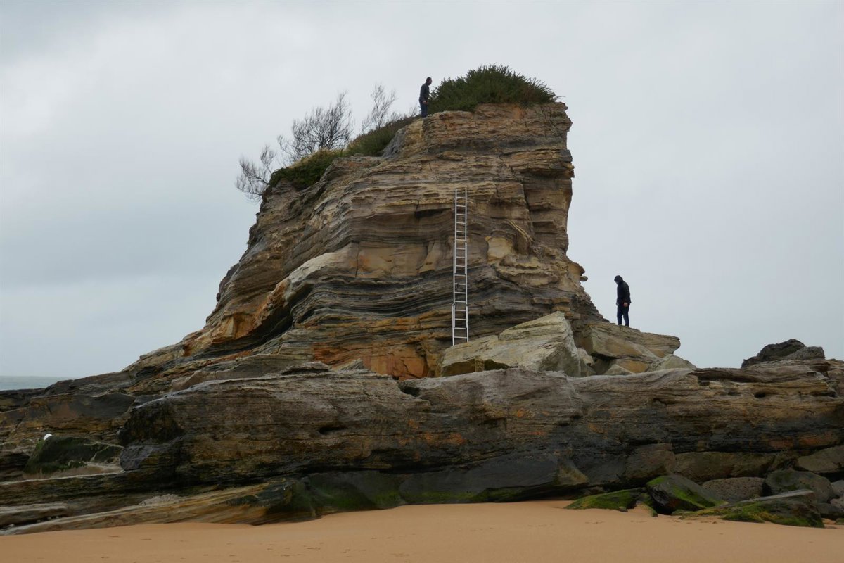 Un equipo técnico ha comenzado este martes los trabajos previos para la recolocación de la escultura de Neptuno Niño sobre el promontorio rocoso de la playa del Camello, unas tareas que pasan, en primer lugar, por analizar las condiciones de la roca.