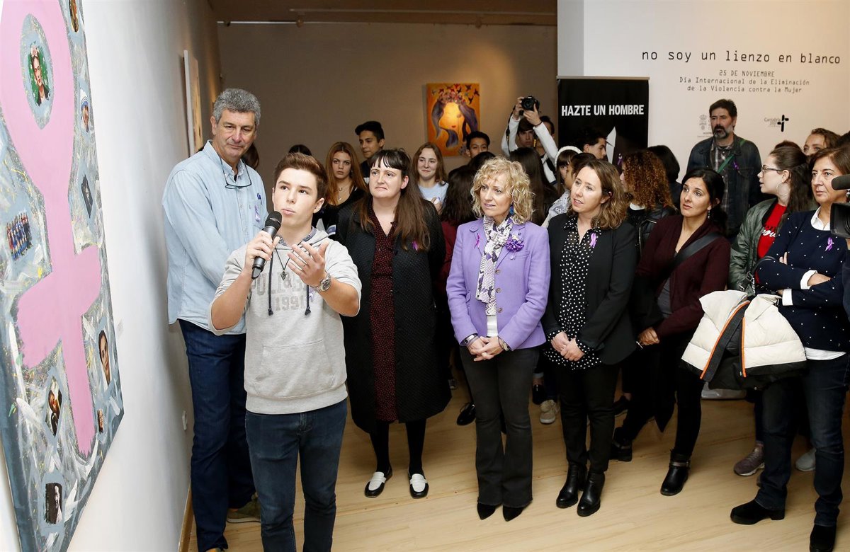 El acto de este viernes ha incluido la inauguración de la exposición 'No soy un lienzo en blanco', proyecto que por segundo año desarrolla el Ejecutivo regional, y que recoge los trabajos de alumnos de nueve centros de educación secundaria de la Comunidad Autónoma que han plasmado sobre un lienzo en blanco sus ideas tras una reflexión y debate sobre las diferentes formas de violencia que sufren las mujeres y las niñas en la sociedad actual.