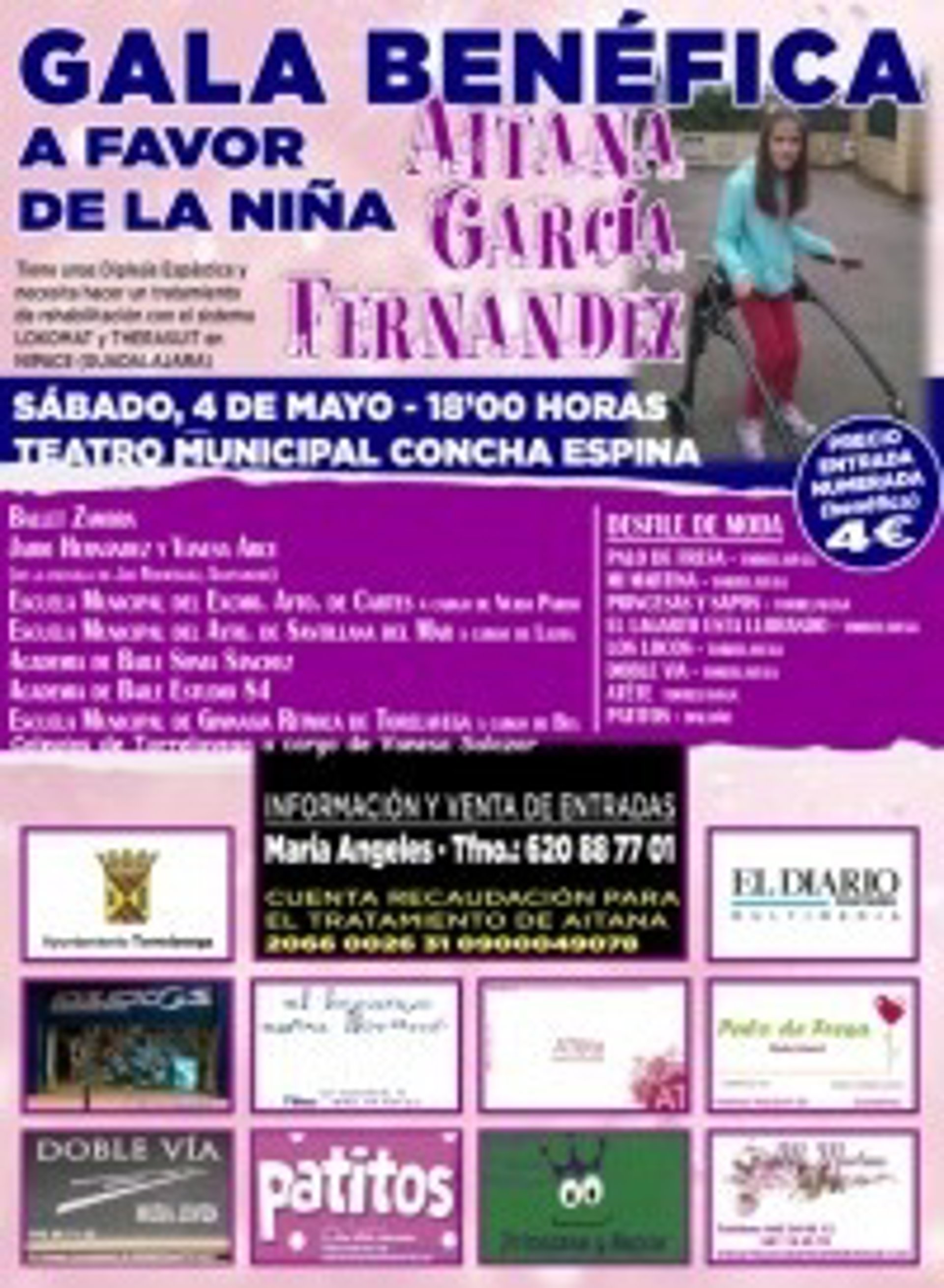 El Teatro Municipal Concha Espina acogerá este sábado, 4 de mayo, a partir de las seis de la tarde, una gala benéfica a favor de Aitana García, una niña de 11 años de Torrelavega que tiene una diplejia espástica, para contribuir a financiar el tratamiento de rehabilitación que va a realizar durante un mes en Guadalajara.