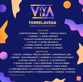 Por su parte, el alcalde de Torrelavega ha afirmado que el Ayuntamiento ha asumido el compromiso de "seguir luchando por la cultura y por todos los profesionales que viven de este sector" y ha destacado que 'Viva la Vida' va a ser recordado por su "formato y emplazamiento únicos", con conciertos más reducidos de aforo para garantizar las medidas sanitarias contra el coronavirus.