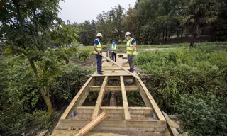 Instalación de la pasarela sobre el arroyo Indiana - AYUNTAMIENTO DE TORRELAVEGA