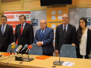 Se trata de la tercera edición de las becas Santander-CRUE-CEPYME, de las que se beneficiarán 5.000 universitarios de toda España, y que este lunes han presentado en rueda de prensa el rector de la UC, José Carlos Gómez Sal; el subdirector general adjunto y director territorial de Cantabria de Banco Santander, Carlos Hazas; y Pedro Nalda, en representación de CEOE-CEPYME Cantabria.