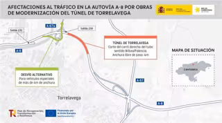 Como consecuencia de la ocupación física de la obra, la anchura libre para el paso de vehículos por el túnel se verá reducida a cuatro metros, por lo que los transportes especiales que superen estas dimensiones se verán obligados a desviarse por la salida anterior al túnel (Salida 230) hacia la A-67a sentido Santander.