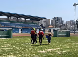 Un niño de 8 años con una herida en la pierna es trasladado en helicóptero al campo de fútbol. - 112
