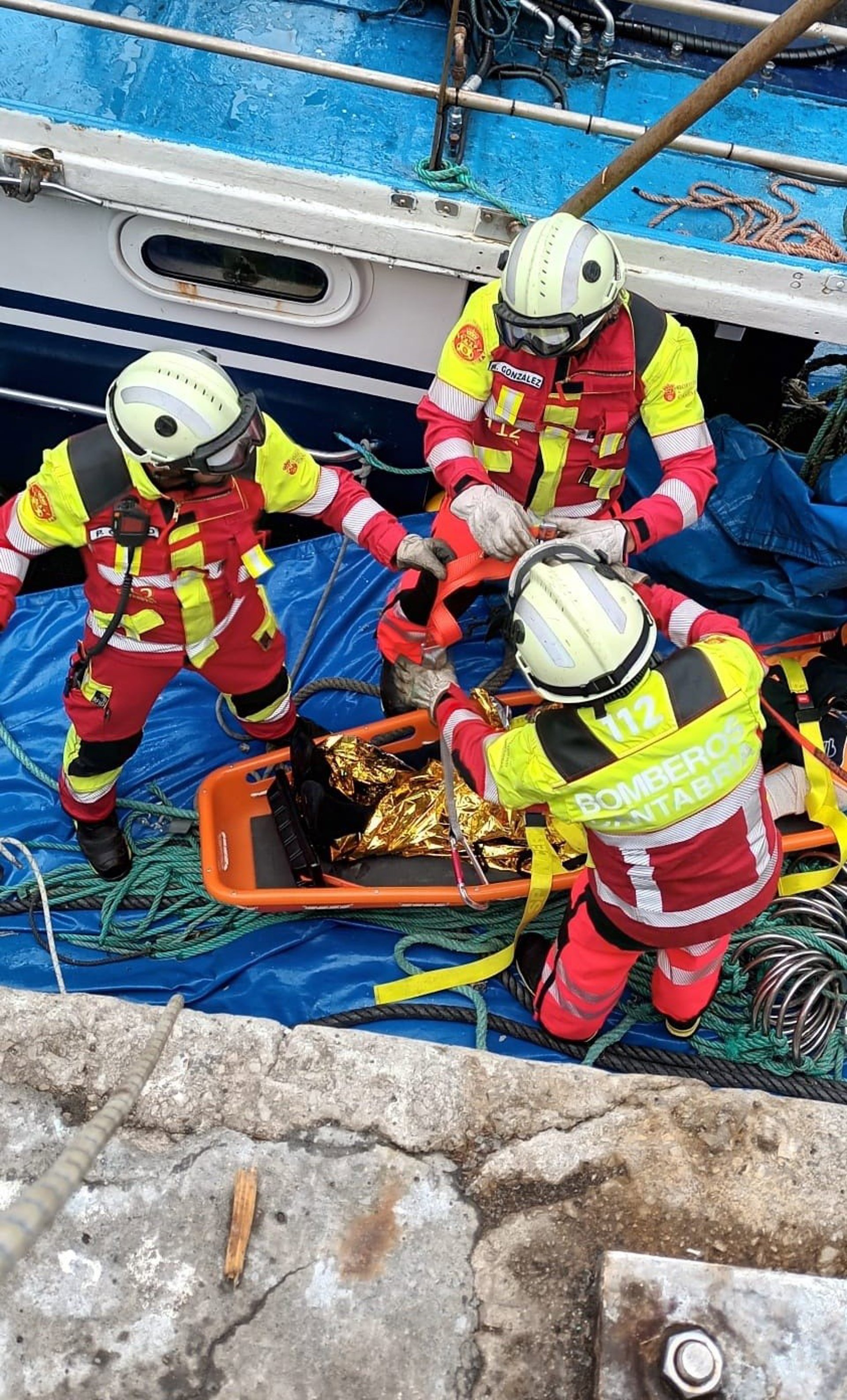 Según información del Centro de Atención a Emergencias 112 del Gobierno de Cantabria, los sanitarios del 061 realizaron una primera asistencia al herido en el barco.