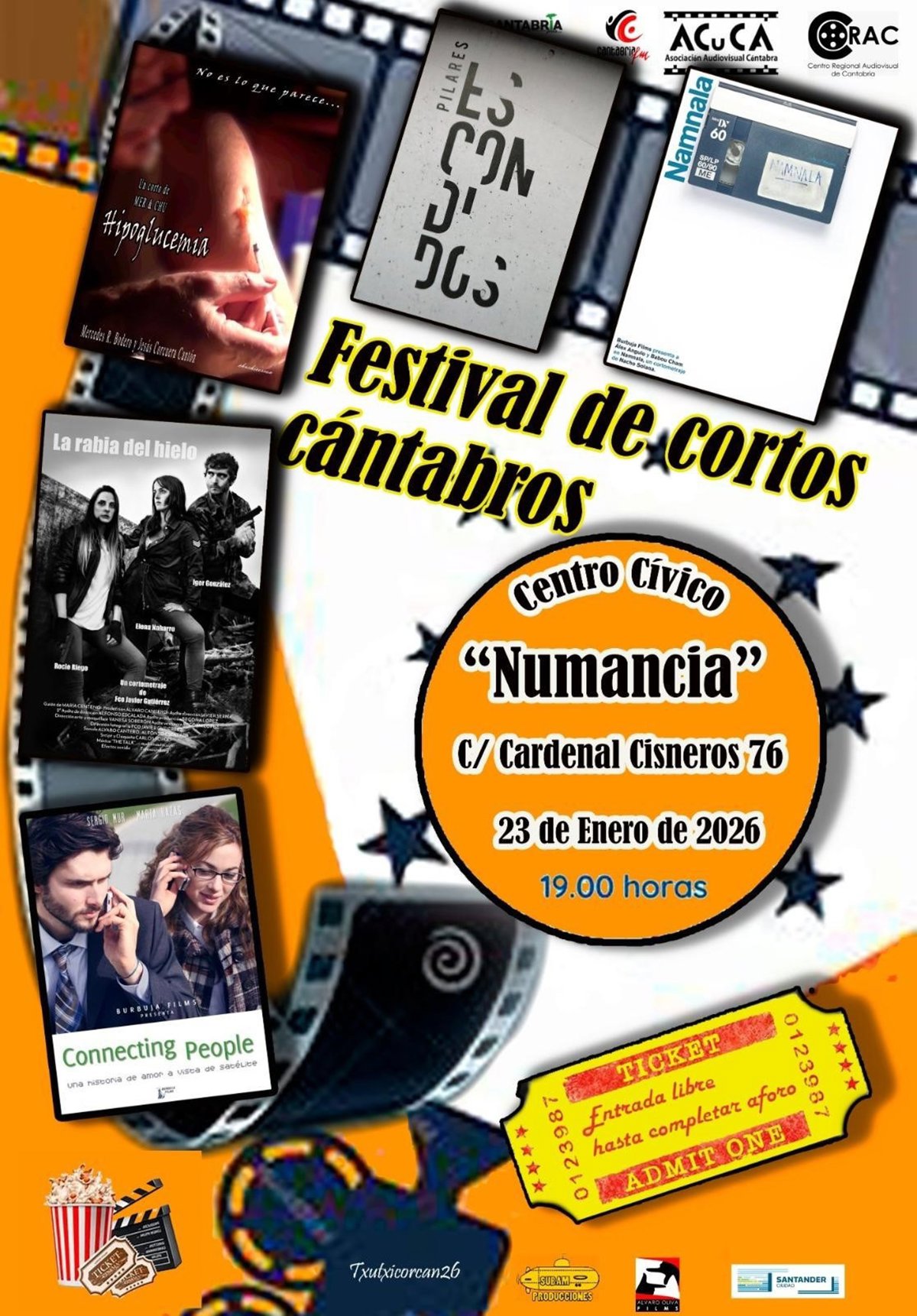 Los centros cívicos Juan de Santander, Numancia y Juan Carlos Calderón acogerán este mes de enero el Festival de Cortos Cántabros con la proyección de un total de 16 cortos de diferentes directores de la región.
