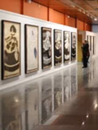 Para esta exposición han sido seleccionadas cuatro series de estampas prestadas por la Galería Marlborough: 'Reina Mariana', 'Caballero', 'Helène' y 'Perfil'. En todos los casos se trata de obras de gran formato que llegan a alcanzar los 170 centímetros de altura, realizadas entre los años 2001 y 2006 y en las que Manolo Valdés ha combinado las técnicas del grabado y el collage.