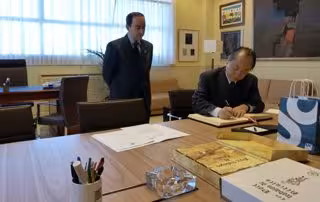 Takahashi agradeció las palabras del rector y el recibimiento dispensado y firmó en el Libro de Honor de la UC.