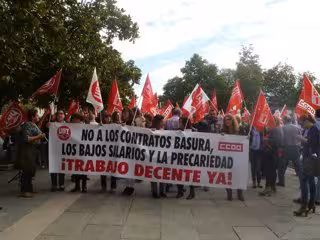 En la concentración convocada por ambos sindicatos en la Plaza de Correos de Santander con motivo de la Jornada Mundial por el Trabajo Decente, que según la organización ha congregado a unas 300 personas, el responsable regional de UGT ha asegurado que "no es admisible" un mercado laboral "con tanta precariedad laboral" y con más de 40.000 desempleados, de los que más de la mitad no percibe prestación alguna.
