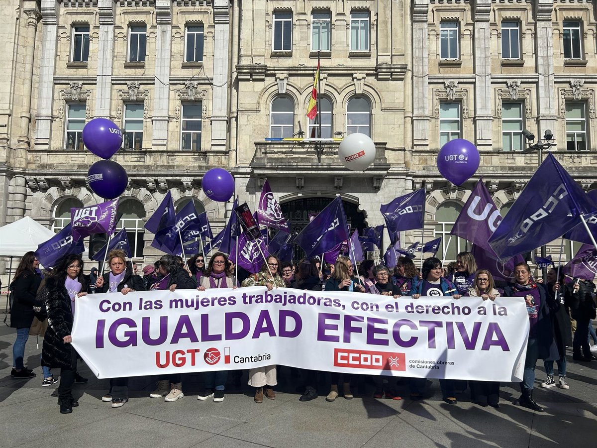 Los sindicatos UGT y Comisiones Obreras (CCOO) han reclamado este viernes en Santander, con motivo del 8M, Día Internacional de la Mujer, más avances laborales para las mujeres para alcanzar la igualdad efectiva.