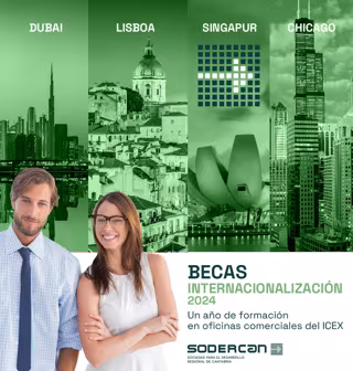 La Sociedad para el Desarrollo de Cantabria (SODERCAN) mantiene abierto hasta el próximo miércoles, 9 de octubre, el plazo para solicitar las becas de formación en internacionalización para jóvenes cántabros, que podrán optar a un año de prácticas en las oficinas comerciales del ICEX en Chicago, Dubái, Lisboa y Singapur.