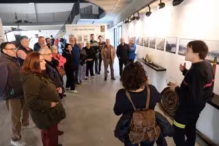 Usuarios del centro Padre Menni y de la Asociación de Personas Sordas de Santander y Cantabria se acercan a la historia de la explosión del vapor Cabo Machichaco a través de la exposición instalada en el Museo de Bomberos del parque santanderino con motivo de la conmemoración del 125 aniversario de la tragedia.