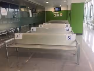 Una vez en la sala de espera correspondiente, los pacientes deben sentarse únicamente en los asientos marcados con un 'si' y respetar la distancia de seguridad recomendada para evitar posibles contagios.
