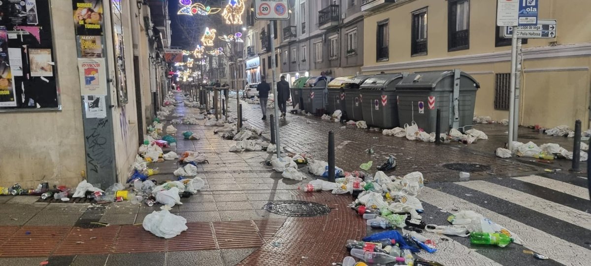 Con estas palabras contrastan el refuerzo del servicio -con más medios materiales y humanos- con los restos de basura (bolsas, botellas, envases, vasos, etc) por botellón en plazas y calles de la ciudad.