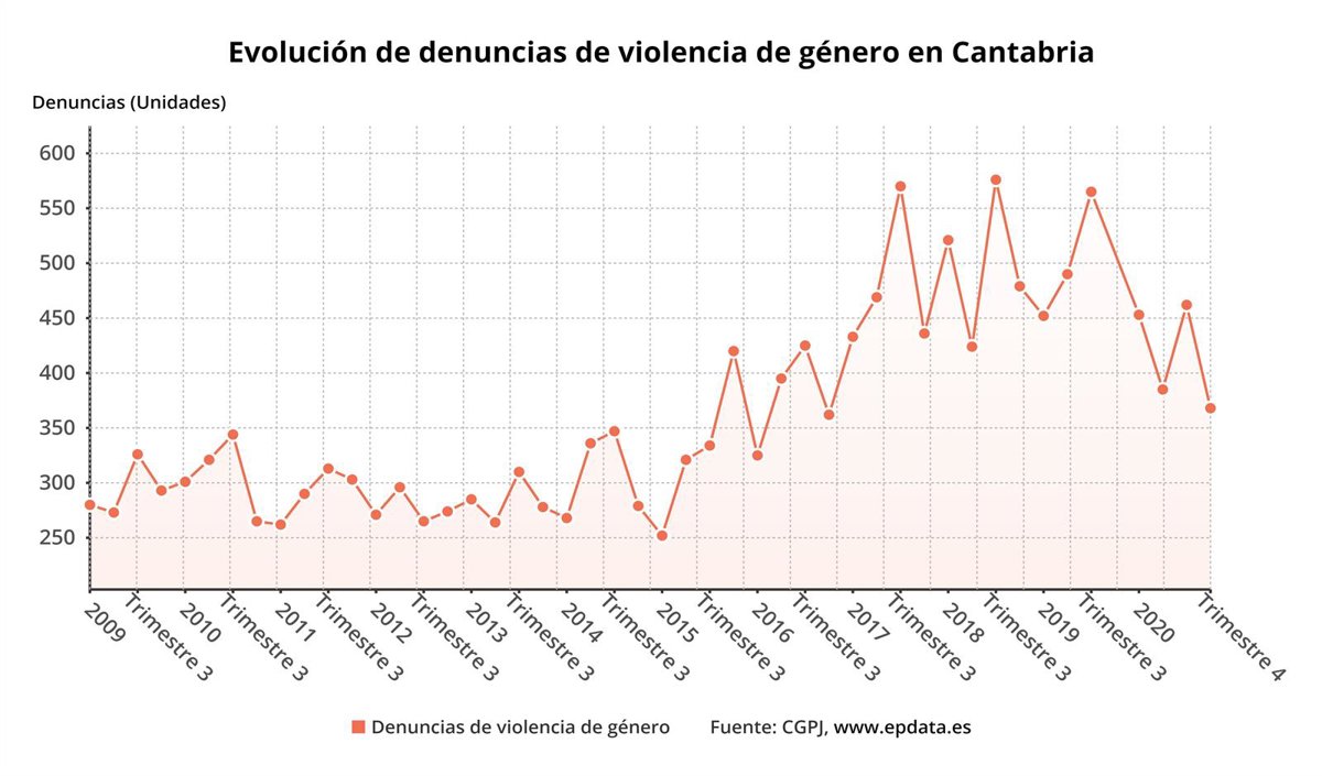 Evolución de las denuncias por violencia de género en Cantabria - EPDATA