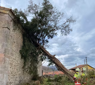 Bomberos del Servicio de Emergencias del Gobierno de Cantabria se han trasladado a la zona para proceder a la retirada del tejo, una de las especies más simbólicas de la comunidad autónoma, tras recibir el aviso de la caída del ejemplar a las 9.30 horas, según ha informado el 112.