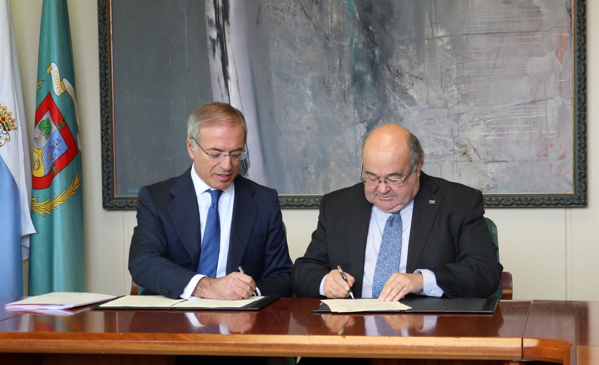 El presidente de Viesgo, Miguel Antoñanzas, y el rector de la UC, José Carlos Gómez Sal, han firmado este martes el acuerdo que unirá a las dos instituciones en la promoción y divulgación del conocimiento de la energía y sus aplicaciones durante los próximos dos años, así como en el desarrollo de proyectos innovadores orientados a acercar el concepto de la energía a las personas.