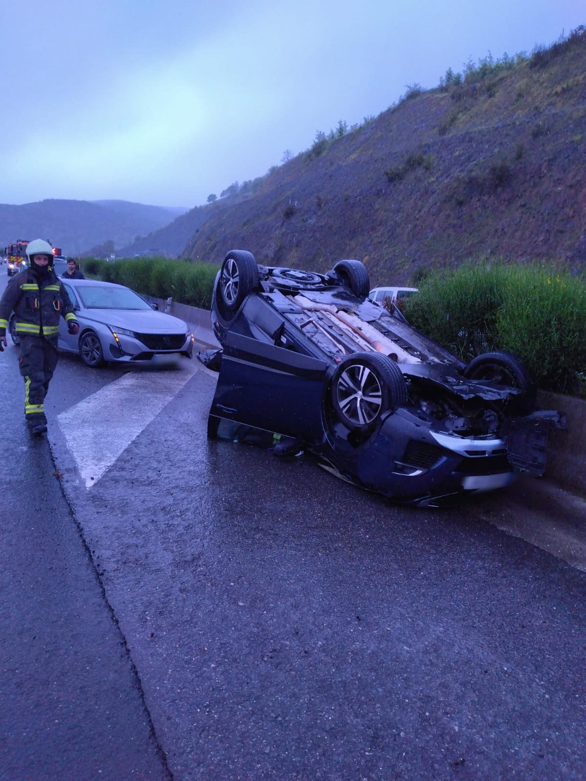 Paralelamente, los bomberos auxiliaron a los ocupantes de otro vehículo que estaba averiado en el arcén a unos 50 metros del vehículo siniestrado, según ha informado el 112 en la red social X (antes Twitter).