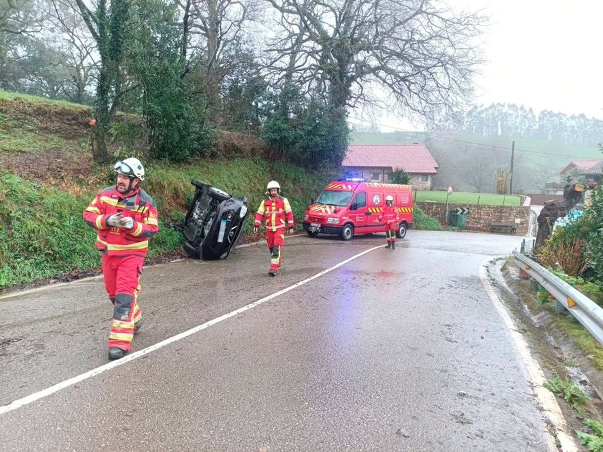 Los bomberos del Gobierno de Cantabria acudieron al lugar tras recibir el Centro de Atención a Emergencias 112 un aviso por un vehículo volcado y comprobaron que la conductora había salido del mismo y había ido al hospital.