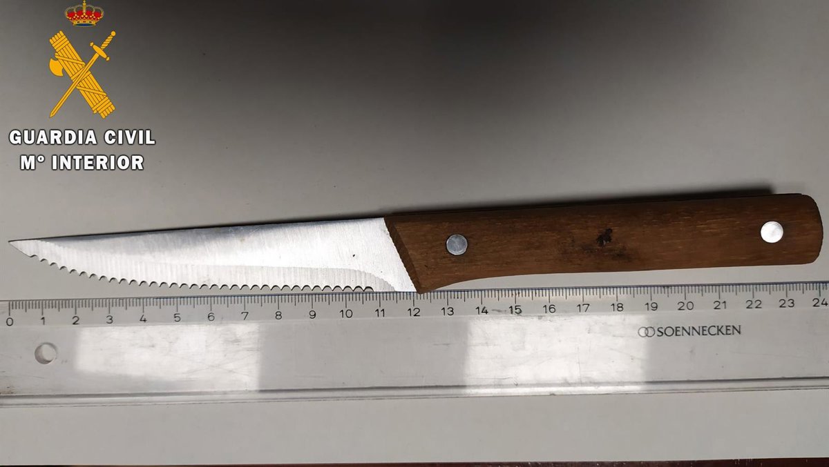 Con la descripción del individuo, varias patrullas buscaron por la zona y encontraron al autor de los hechos a unos 600 metros del lugar del suceso. Una vez detenido, en el cacheo no se encontró el cuchillo, que finalmente fue localizado a 100 metros de donde se produjo la detención, tirado en la acera.