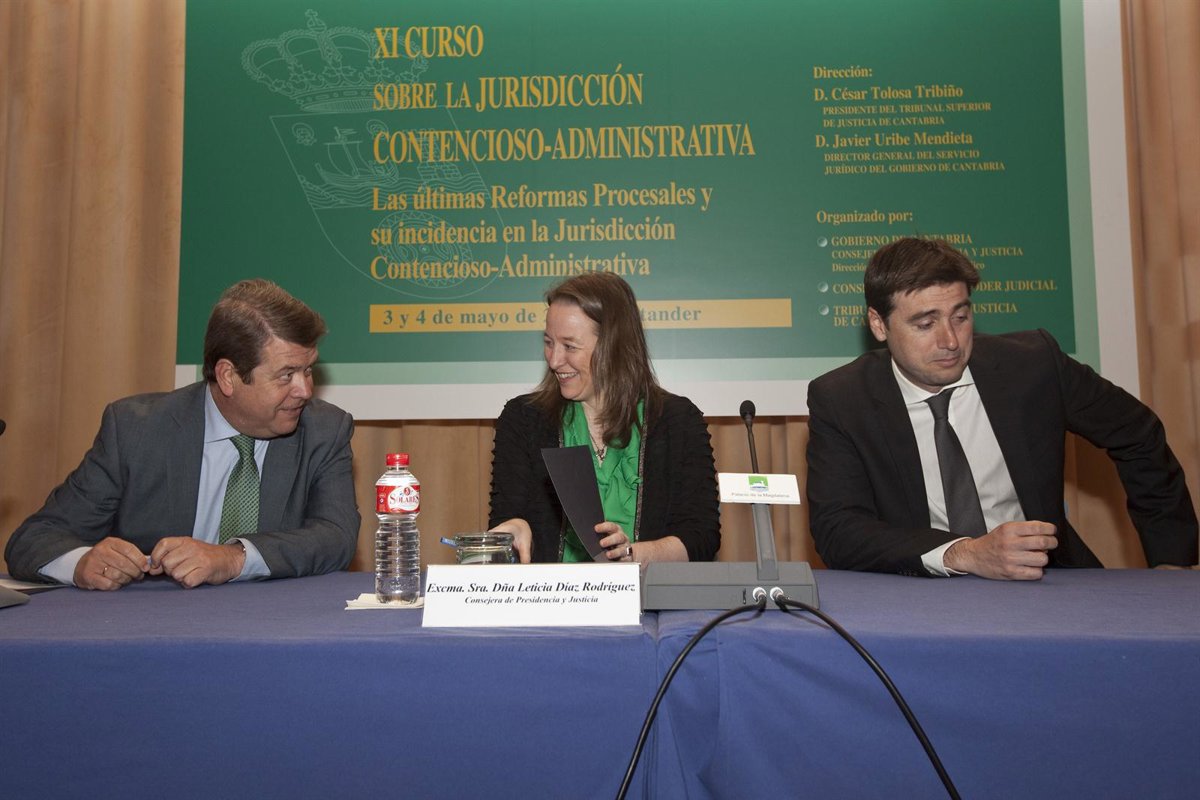 El presidente del Tribunal Superior de Justicia de Cantabria, César Tolosa, y la consejera de Presidencia y Justicia, Leticia Díaz, han inaugurado este jueves el encuentro que, con once ediciones ya, se ha convertido en un foro de referencia nacional donde anualmente se abordan las cuestiones de actualidad de esta jurisdicción.