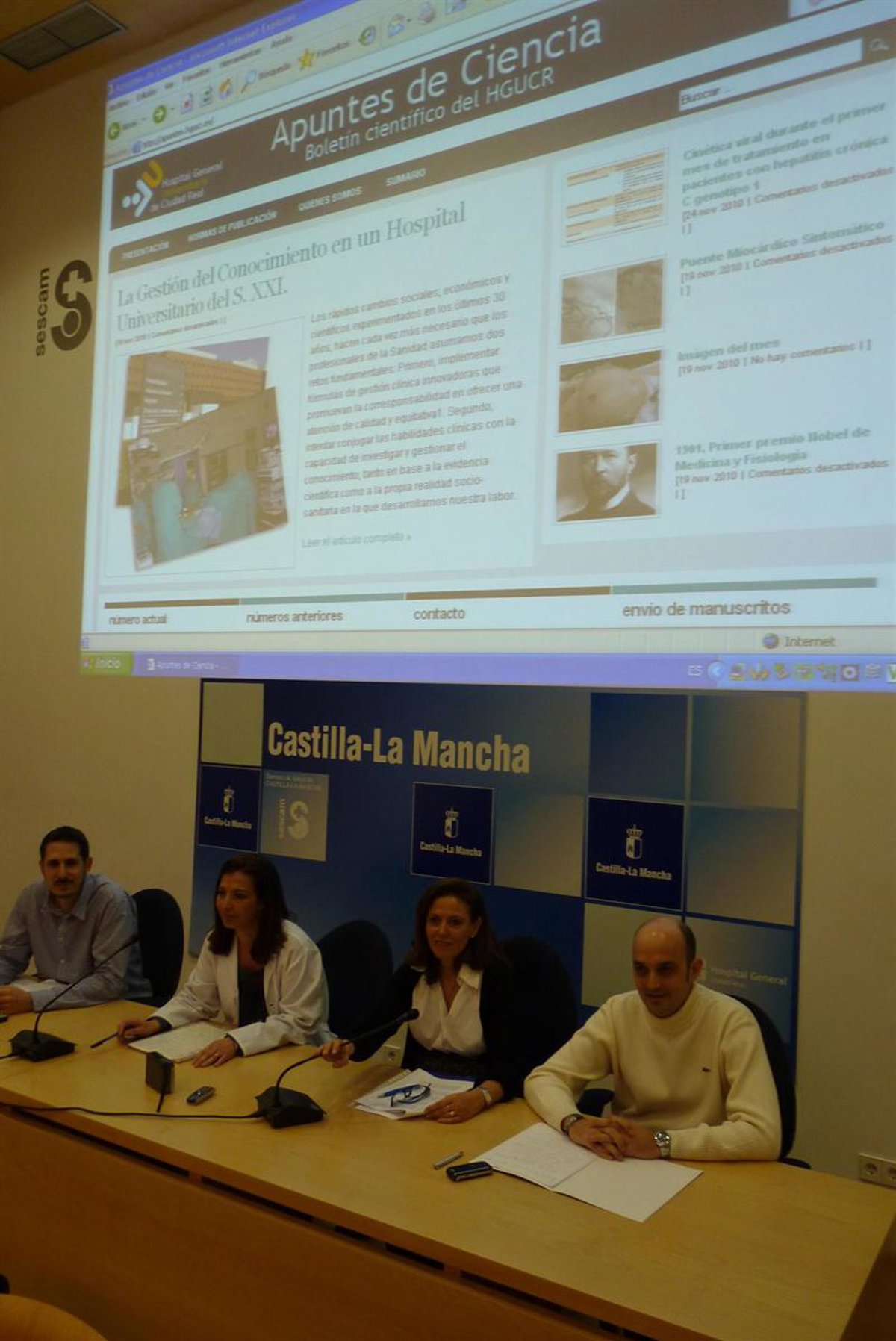 La presentación del boletín científico ha corrido a cargo de directora de Investigación, Docencia, Formación y Calidad, Teresa Rodríguez, y de la investigadora de la Unidad de Investigación Traslacional, Carmen González, junto al responsable del Área Clínica de la Unidad de Apoyo a la Investigación, Alberto León, y el del servicio de Informática del Hospital General de Ciudad Real, Lorenzo Flores.